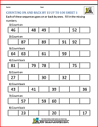 Counting Backwards Worksheets - Planes & Balloons Backwards counting worksheets You will find a total of eight worksheets on this page, two worksheets per group of numbers. First, children will start counting backwards from 10. Then they can move on to higher numbers such as 20, 50, and even 100. You can take a peek at the worksheets in the preview below, then download the file at the very end.